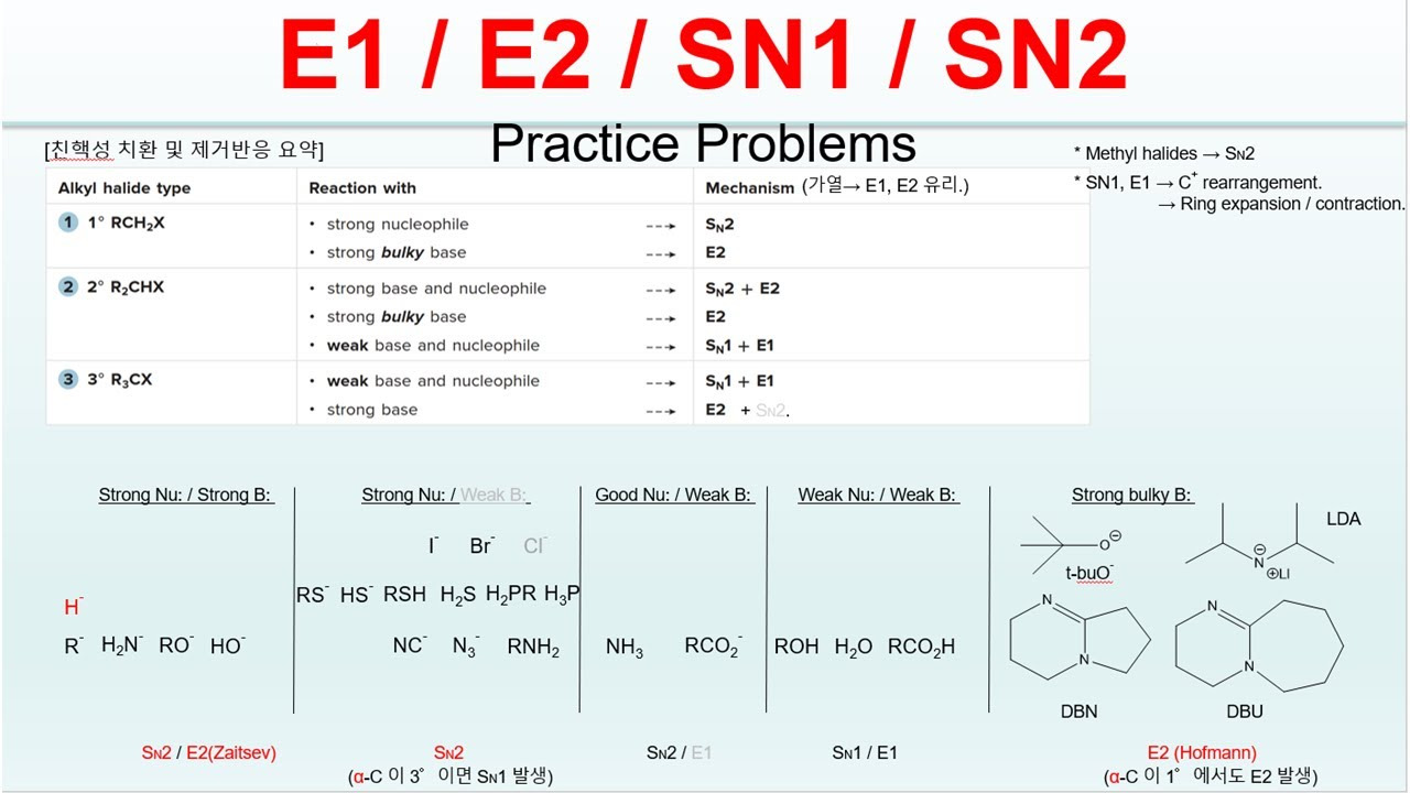 #유기화학 #E1반응 #E2반응 #화학반응 #알킬할라이드 #카보카티온 #전자이동 #화학메커니즘