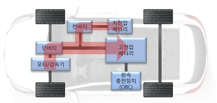 - 온보드 충전기 : 외부 전원으로부터 전기를 받아 배터리를 충전하는 장치입니다.