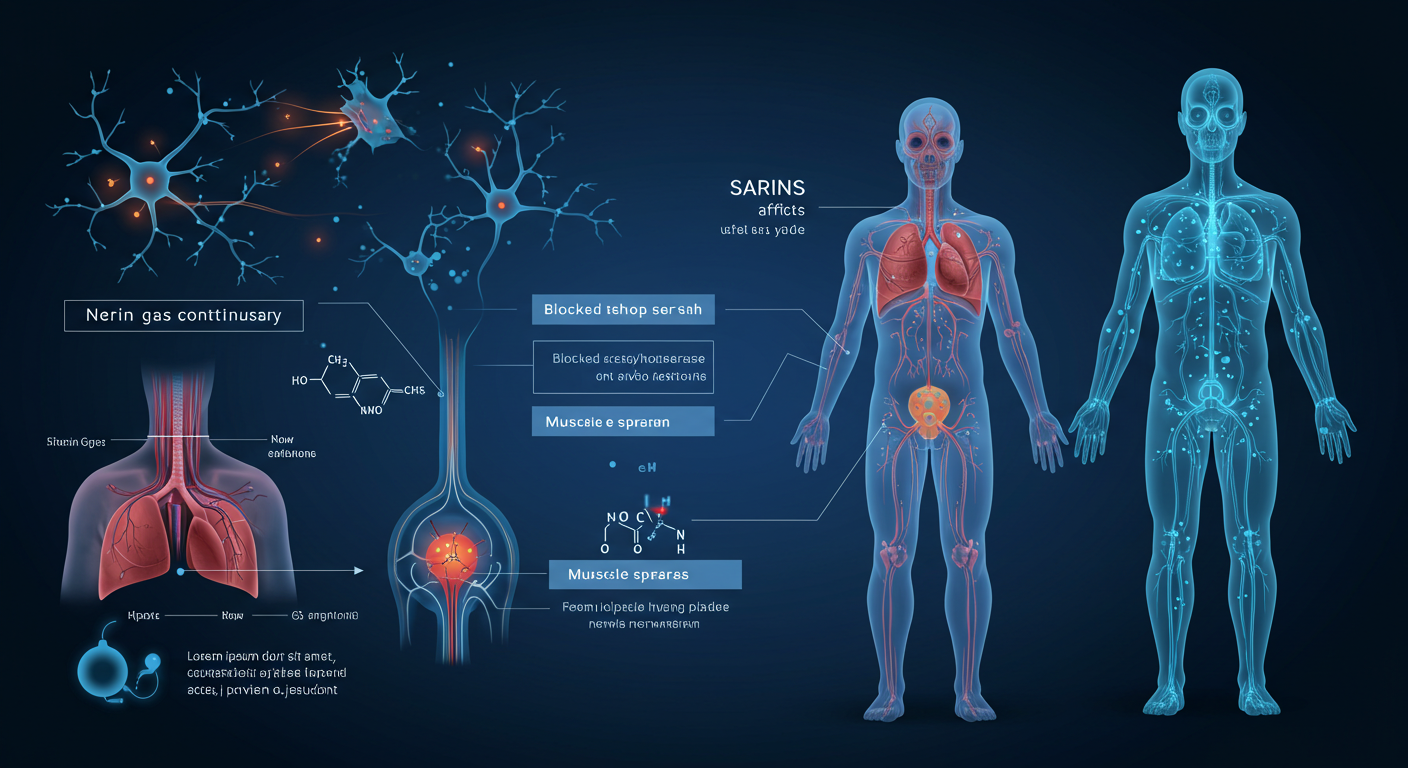 - 원리: 사린은 우리 몸의 신경전달물질인 **아세틸콜린(ACh)**을 분해하는 효소(AChE)를 마비시킵니다.