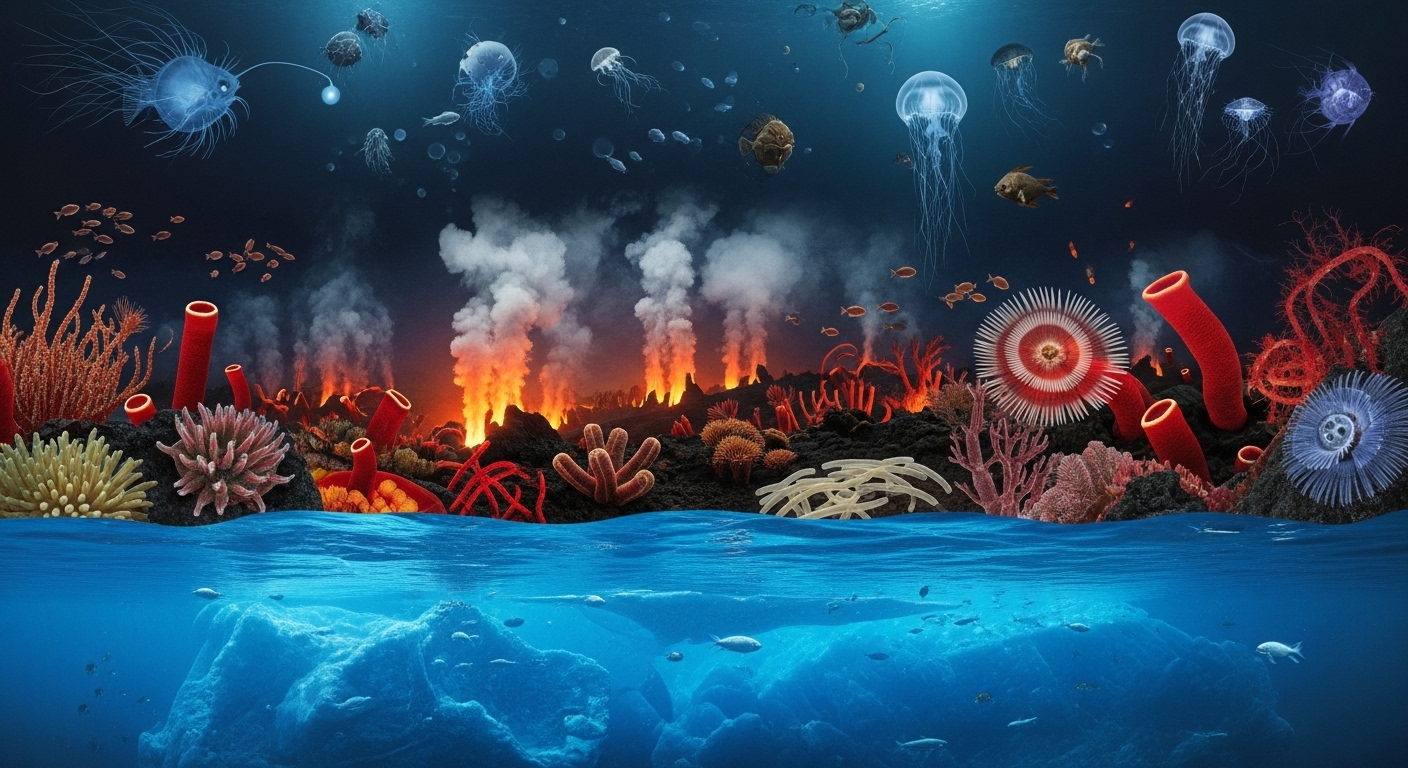 심해의 가장 놀라운 생태계 중 하나는 바로 열수 분출구(Hydrothermal Vents) 주변입니다. 해저 화산 활동으로 인해 수백 도에 달하는 뜨겁고 유독한 광물질이 뿜어져 나오는 이곳은 생명이 살기 불가능해 보입니다.